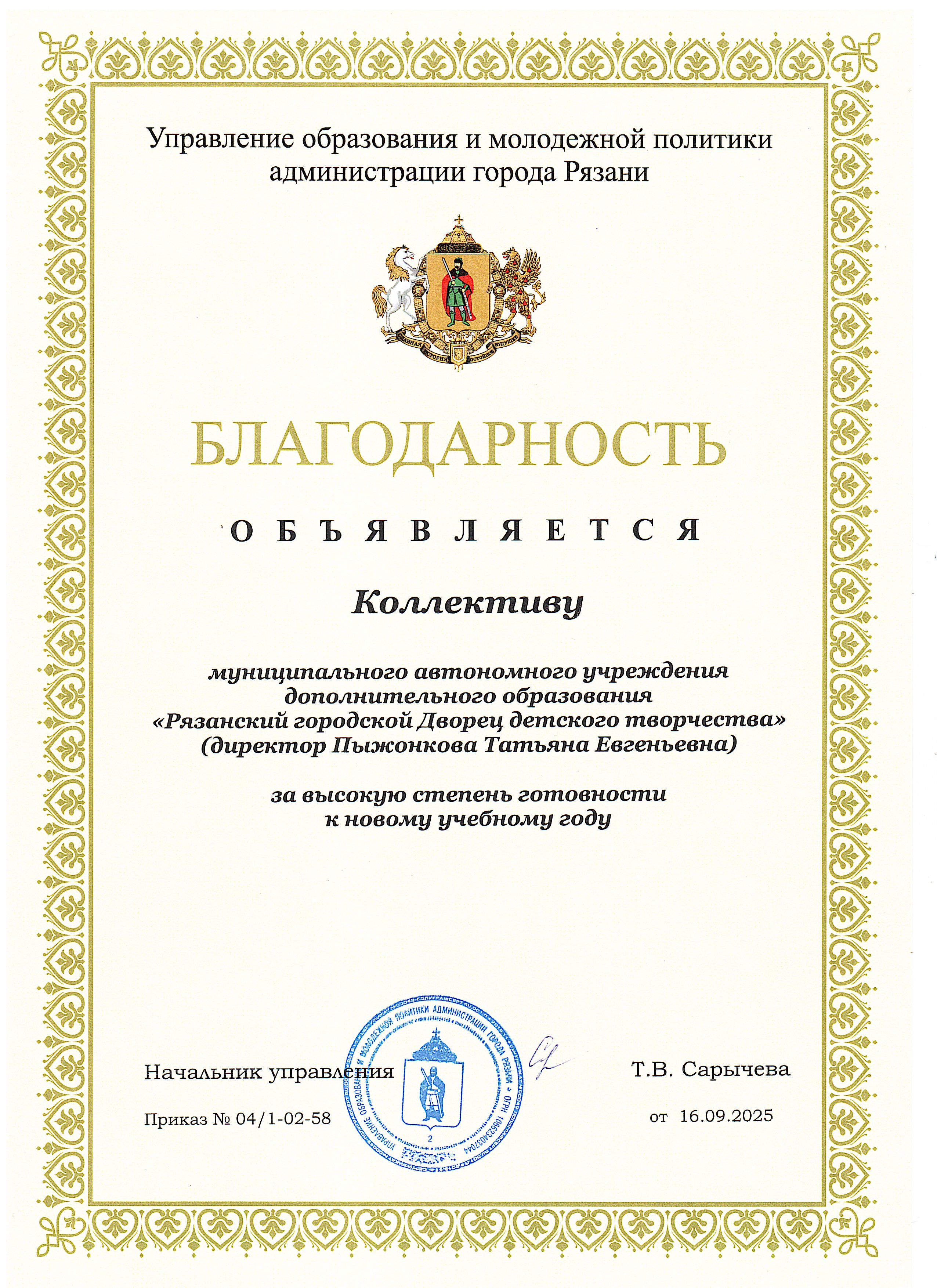 Муниципальное автономное учреждение дополнительного образования Рязанский городской