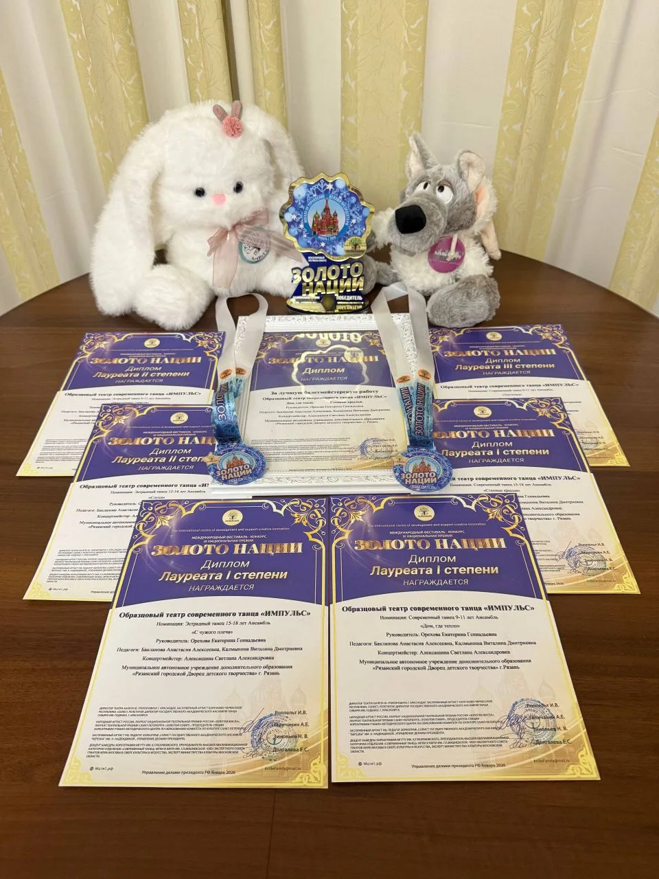 Образцовый театр современного танца "Импульс" Рязанского городского Дворца детского творчества принял участие в международном фестивале - конкурсе: IX Национальная премия "Золото Нации" (г. Москва, 15-18 января 2026).